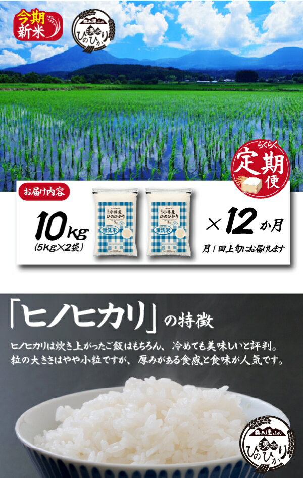 - 【ふるさと納税】【お米の定期便/12か月コース】\無洗米/霧島連山の湧水ヒノヒカリ(定期便 国産 米 無洗米 精米済み 送料無料)