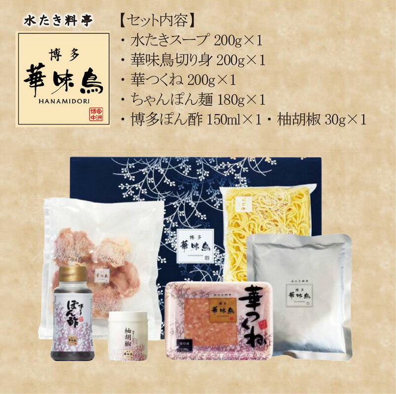 - 【ふるさと納税】【3ヶ月連続定期便】〈博多華味鳥〉 水たきセット 2人前 ちゃんぽん麺・柚子胡椒付き(HS-02DM) [M929-1] 水炊き 鍋 人気 セット 肉 鶏 はなみどり ご当地グルメ 福岡 スープ