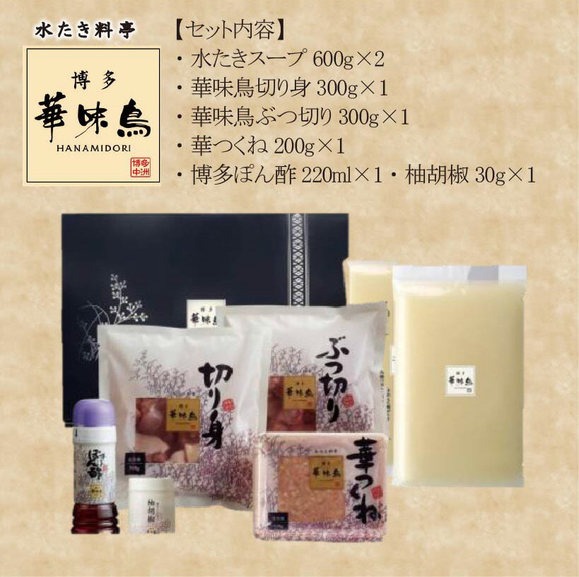 - 【ふるさと納税】【3ヶ月連続定期便】〈博多華味鳥〉 水たきセット 3~4人前 柚子胡椒付き(H-A1) [M930-1] 水炊き 鍋 人気 セット 肉 鶏 はなみどり ご当地グルメ 福岡 スープ