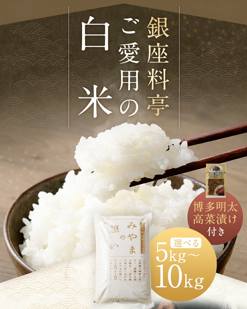 - 【ふるさと納税】【銀座料亭ご愛用の白米】<選べる> 5~10kg 博多明太高菜漬け 2~6袋 セット 福岡県産 ご飯 白米 米 精米 美味しい 九州 おむすび 和食 高級 送料無料 令和7年産 A246 A247 B45