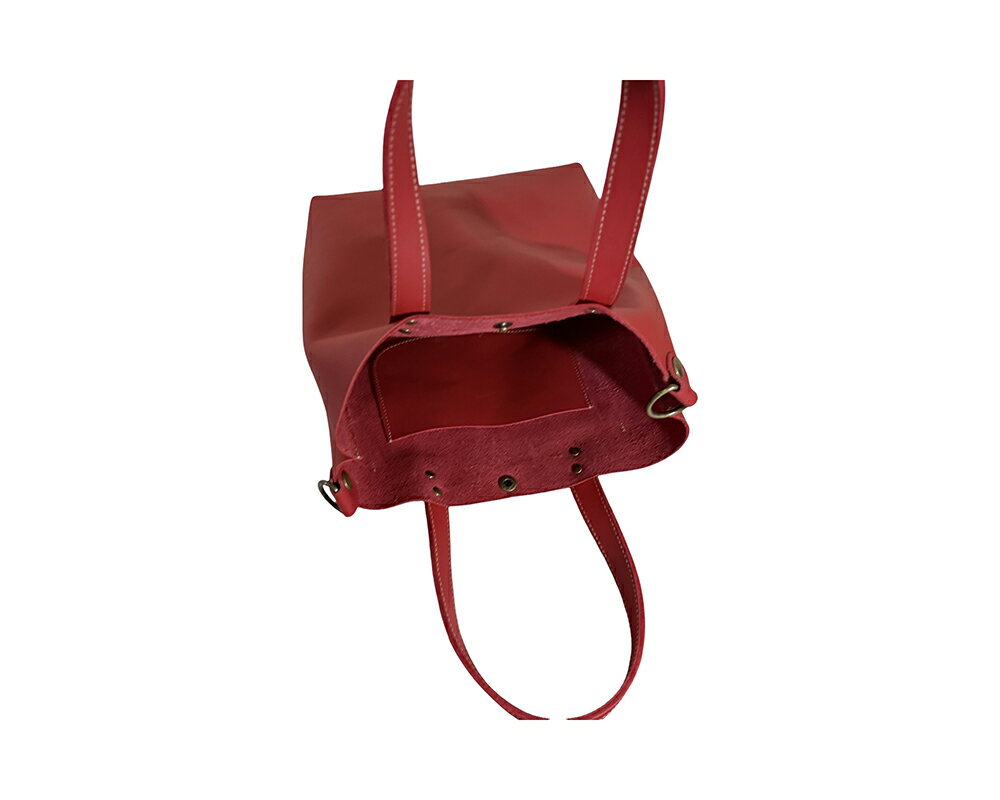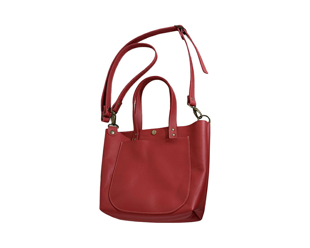 - 【ふるさと納税】【八幡レザー】ショルダー付きトートバッグ(赤) ヨコ(上部)約30cm (下部)約20cm タテ約23cm マチ約10cm 重さ約240g 牛革 hito+(ヒトプラス) 日本製