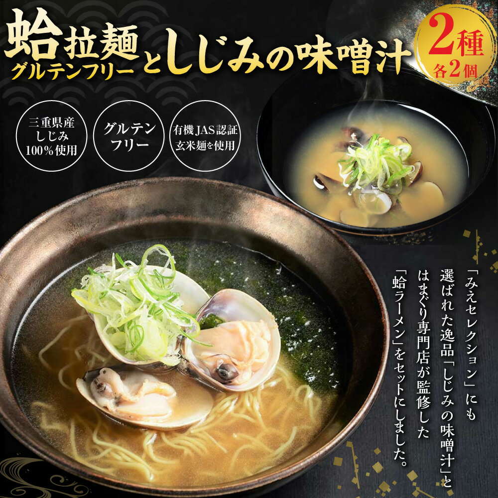 【ふるさと納税】蛤拉麺グルテンフリー(2個)としじみの味噌汁(20個入) セット 合計752g はまぐりらーめん ハマグリ はまぐり 蛤 シジミ 蜆 魚貝類 水産物 みそ汁 ラーメン らーめん 玄米麺 麺類 インスタント 保存料不使用 グルメ 三重県 桑名市 送料無料