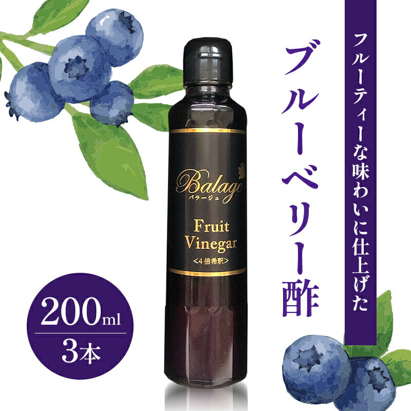 【ふるさと納税】KK食品のフルーツ酢 200ml×3本セット(ギフト箱入り)(ブルーベリー酢×3本) 酢 フルーツビネガー 飲む酢 果実酢 ギフト 贈り物 浜松市 お届け:2026年1月下旬より