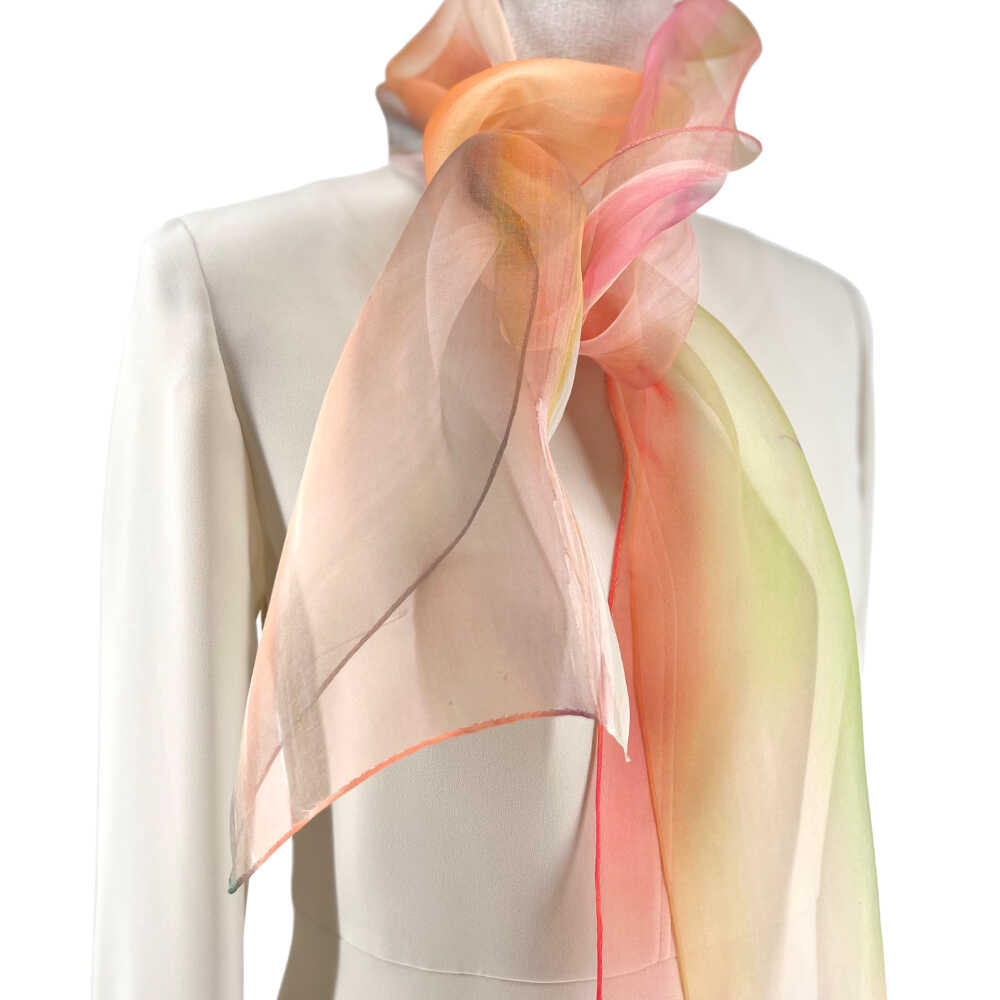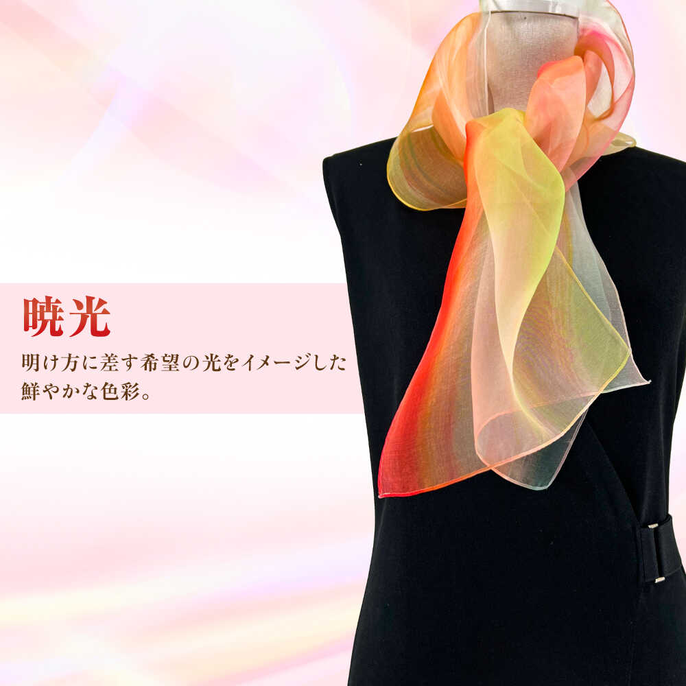 【ふるさと納税】スカーフ 美濃友禅 【シルクスカーフ】 NAOE KAWAMURA ー暁光ー ストール ショール 雑貨 小物 人気 染色 グラデーション 上品 高級感 エレガント フォーマル カジュアル サステナブル ハンドメイド ギフト 岐阜市 / 河村尚江デザイン事務所[ANDE003]