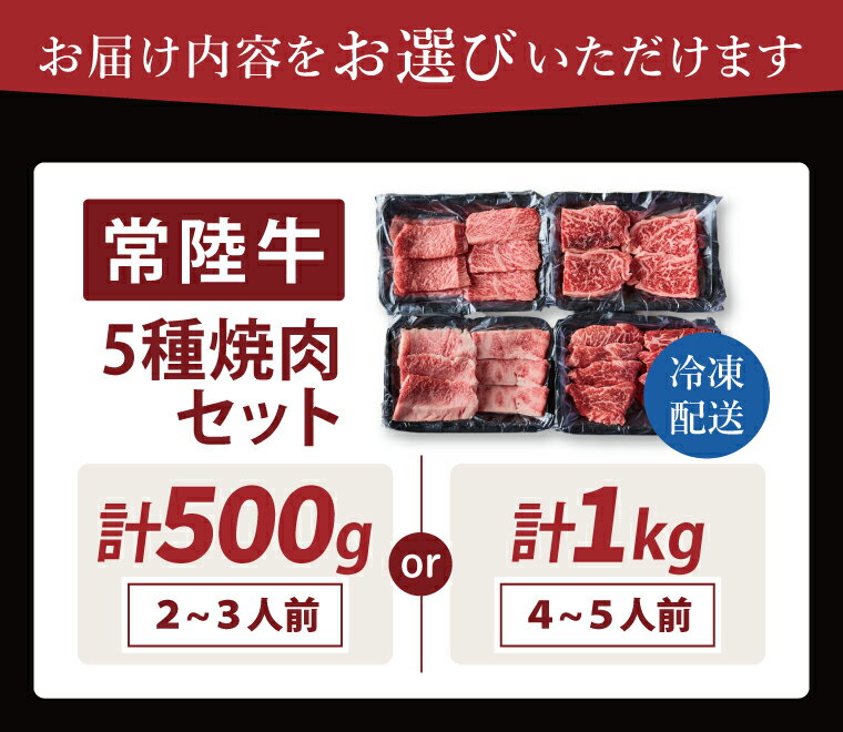 - 【ふるさと納税】【選べる内容量】常陸牛5種焼肉セット希少部位入り (2~3人前 500g)(4~5人前1kg)【常陸牛 国産牛 和牛 牛肉 切り落とし 焼肉セット 希少部位 茨城県 水戸市】(NW-12)