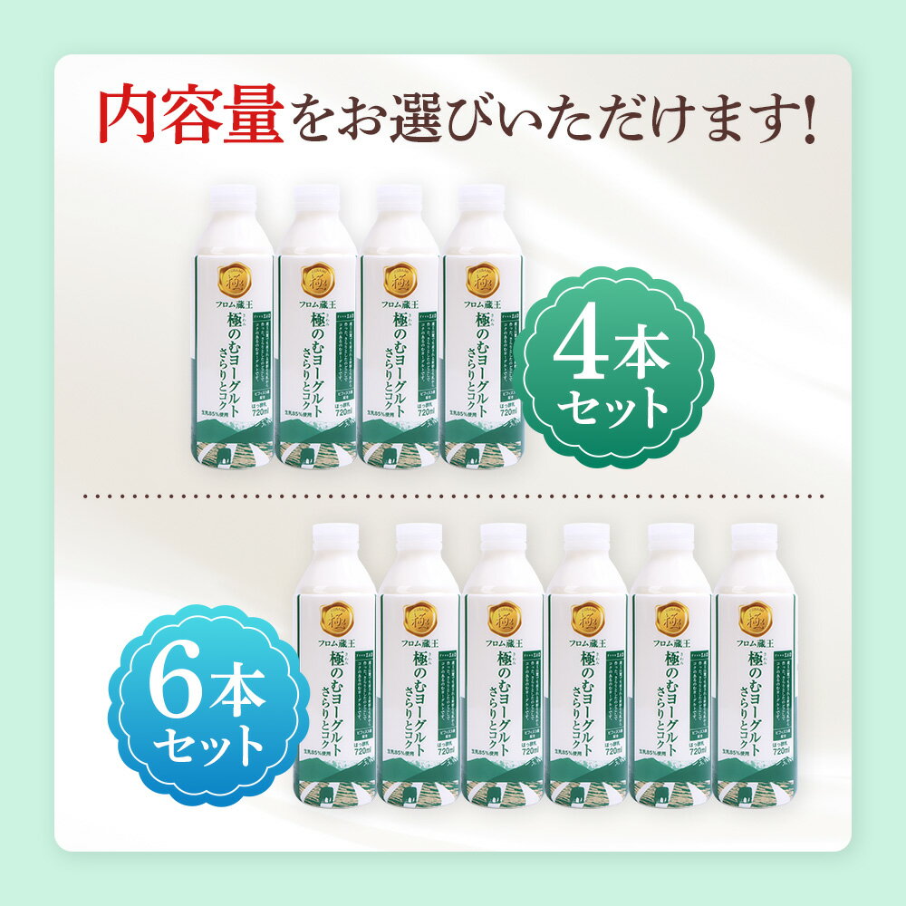 【ふるさと納税】【選べる内容量】《さらりとコク》フロム蔵王 極のむヨーグルト 4本 or 6本 | のむヨーグルト のむ ヨーグルト セット 生乳 安定剤 香料 不使用 ビフィズス菌 美味しい 人気 ふるさと納税 宮城県 白石市 山田乳業 フロム蔵王 オンライン申請 マイページ