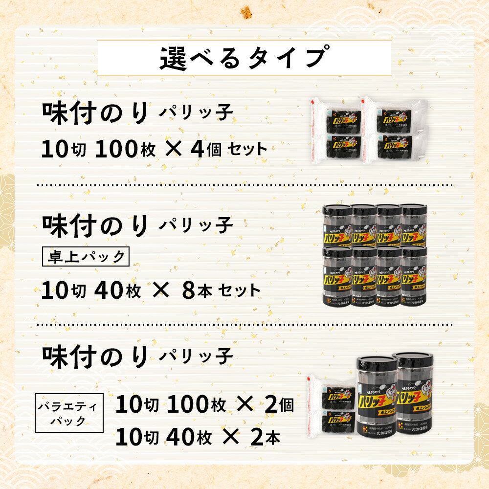 - 【ふるさと納税】【選べるタイプ】味付のり パリッ子 北畑海苔 | 和歌山市 海苔 加工食品 味付けのり 国産 人気 おすすめ 焼き海苔 ご飯のお供 お弁当用 海苔セット 海苔詰め合わせ お取り寄せ 通販 送料無料 ふるさと納税