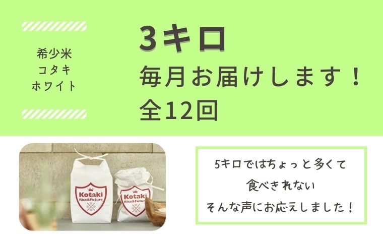 - 【ふるさと納税】≪令和7年産≫希少米コタキホワイト3kg毎月お届け(全12回)