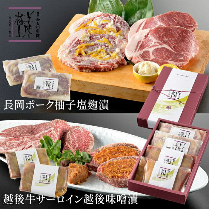 【ふるさと納税】66-14B美味極上 長岡ポークステーキ柚子塩麹漬2枚と越後牛サーロインステーキ越後味噌漬2枚セット