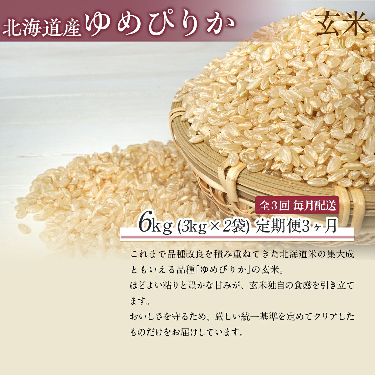 - 【ふるさと納税】【令和7年産】 【3ヶ月定期配送】(玄米6kg)ホクレンゆめぴりか(3kg×2袋) 【 ふるさと納税 人気 おすすめ ランキング 米 コメ こめ お米 ゆめぴりか ご飯 玄米 無洗米 国産 ごはん 白飯 定期便 北海道 むかわ町 送料無料 】 MKWAI058