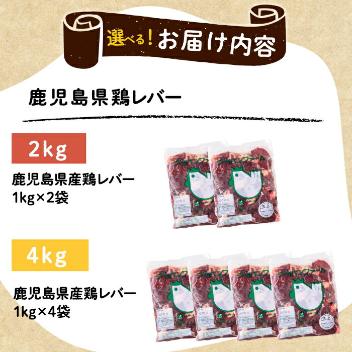 【ふるさと納税】<すぐ届く!>【容量が選べる!】鹿児島県産鶏レバー(計2kg or 計4kg)肉 鶏肉 レバー レバニラ 焼鳥 ワイン煮 甘辛煮 から揚げ 国産 九州産 冷凍【宮下商店】