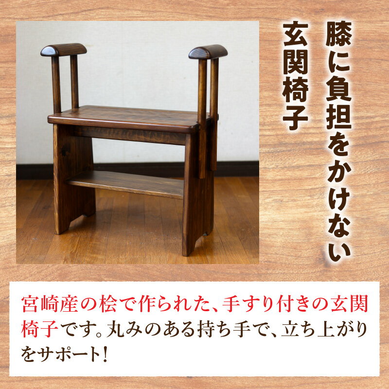 【ふるさと納税】らくらく立ち上がり玄関椅子 椅子 チェア 玄関椅子 ベンチ 腰掛け スツール アームレスト付き 手すり 手すり付き 玄関 家具 インテリア 雑貨 日用雑貨 木工品 工芸品 木製品 木製 天然木 木目調 木 ウッド おしゃれ シンプル 宮崎県 宮崎市