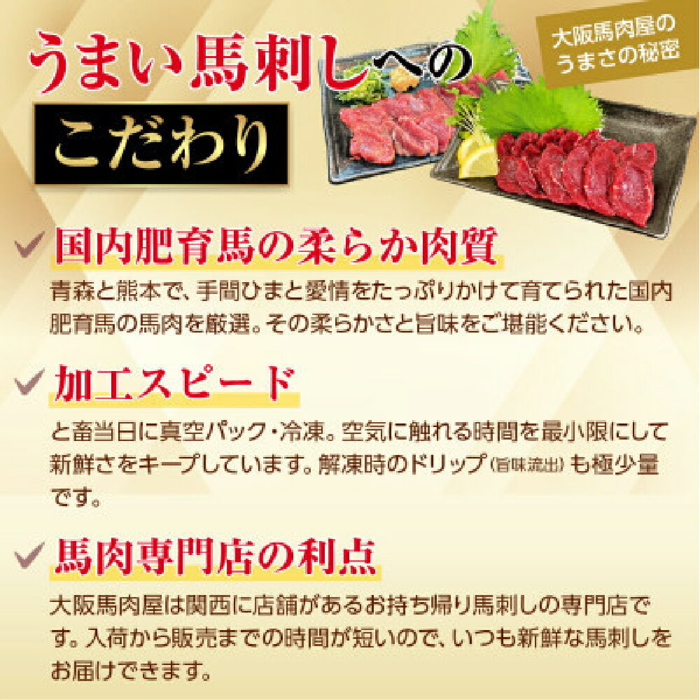 【ふるさと納税】馬刺しセット【選べる種類】4種 5種 6種 1ブロック45g〜50g 8~10切れ 約1人前 馬刺し 熊本 馬刺 国産 ギフト 肉 馬肉 グルメ おつまみ 晩酌 内祝い お歳暮 御歳暮 熊本県 宇城市 大阪馬肉屋TMP