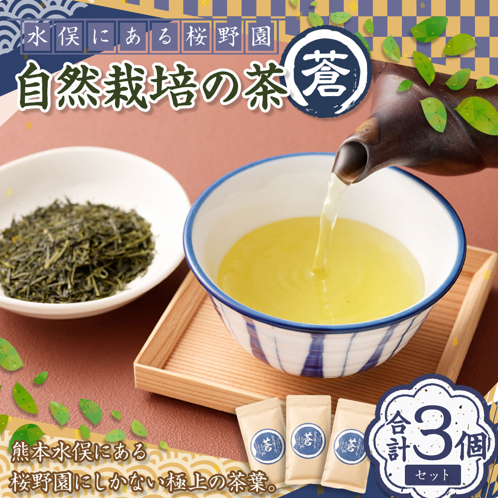 【ふるさと納税】熊本水俣にある桜野園のお茶 自然栽培の煎茶「蒼」3個セット お茶 茶 ドリンク 茶葉 煎茶 九州 熊本県 送料無料
