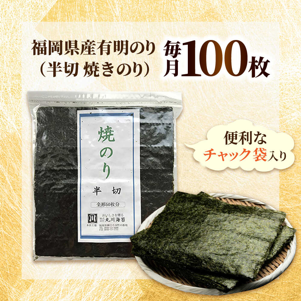 【ふるさと納税】【全12回定期便】福岡県産有明のり 手巻き海苔 半切100枚 吉富町/株式会社ゼロプラス[BGAA045]