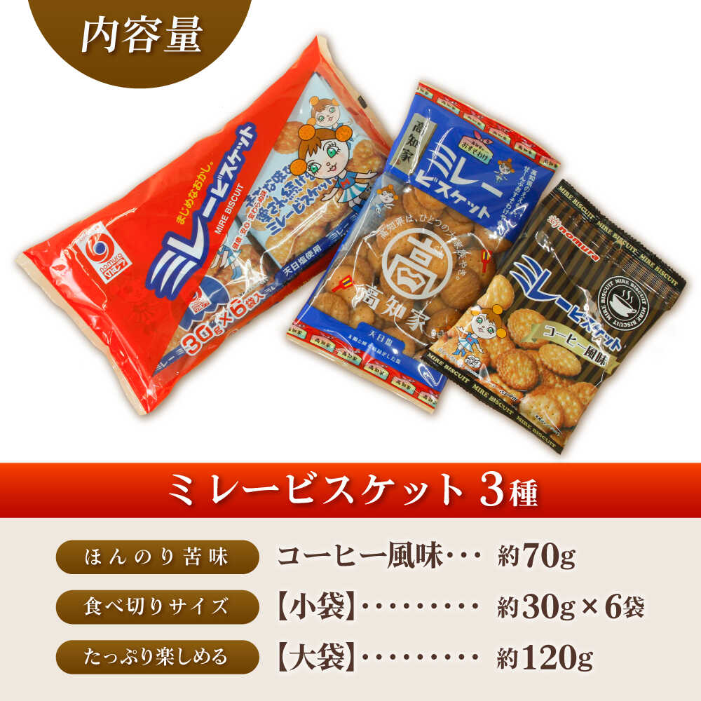 - 【ふるさと納税】ミレービスケット 詰め合わせ 3種セット(コーヒー風味70g×1袋・小袋30g×6袋入り・大袋120g×1袋) /5000円以内 5,000円 4000円 5千未満 コスパ【株式会社 四国健商】[ATAF160]