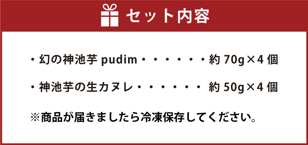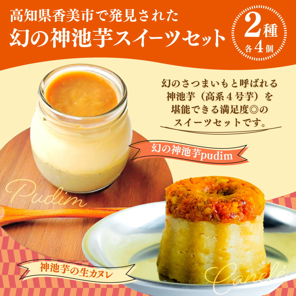 - 【ふるさと納税】高知県香美市で発見された幻の神池芋スイーツセット【プヂン&生カヌレ】 計8個(各4個) 合計480g プリン カヌレ 神池芋 さつまいも サツマイモ さつま芋 スイーツ お菓子 洋菓子 デザート おやつ 冷凍 高知県産 国産 高知県 香美市 送料無料