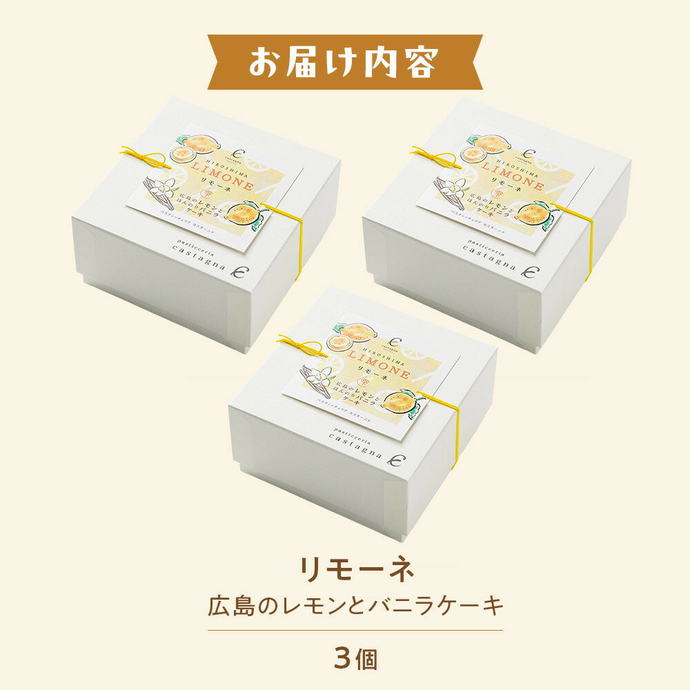 - 【ふるさと納税】リモーネ ~ 広島のレモンとバニラのケーキ ~ 3個 | 菓子 スイーツ デザート おかし 人気 食品 クリスマス バレンタイン ギフト プレゼント 手土産 お取り寄せ 広島市