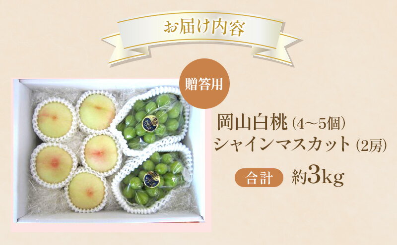 【ふるさと納税】桃 ぶどう 2026年 先行受付 贈答用 白桃 シャインマスカット 詰め合わせ 約3kg フルーツ 果物 岡山 赤磐市 お届け:2026年8月10日~2026年8月31日