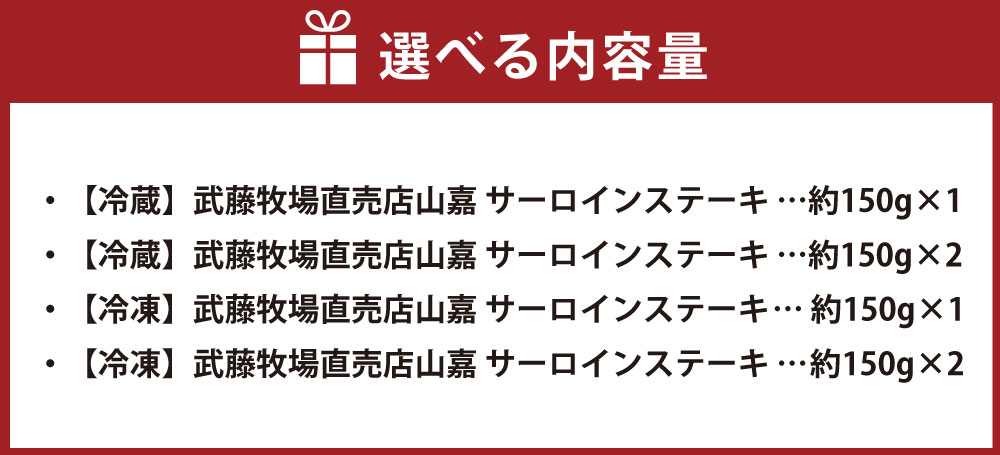 - 【ふるさと納税】<選べる内容量・温度帯>【冷蔵or冷凍】武藤牧場直売店山嘉 サーロインステーキ 約150g×1 / 計約300g(約150g×2) 牛肉 お肉 サーロイン ステーキ 三重県産 国産 三重県 桑名市 送料無料