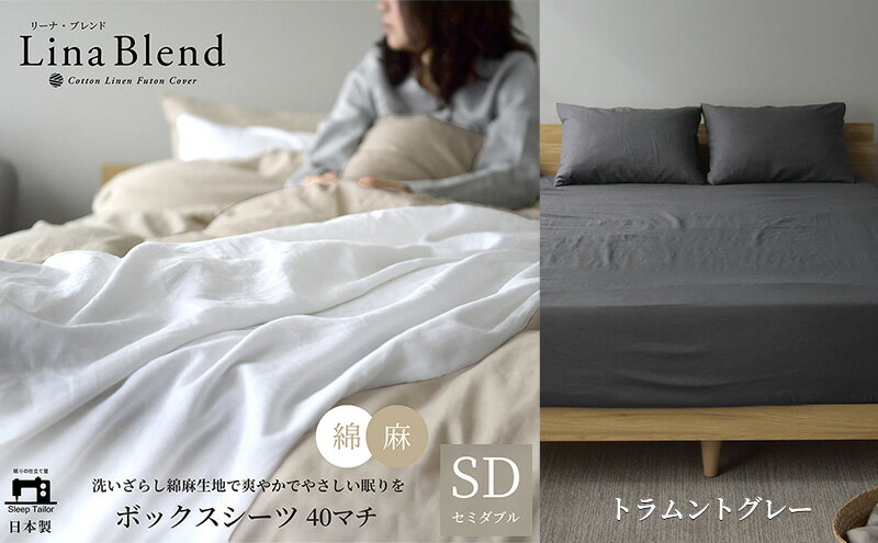 【ふるさと納税】寝具 日本製 ボックスシーツ セミダブル マチ40cm リネン & コットン 麻 綿 洗いざらし トラムントグレー リーナブレンド 極上の柔らかさ 洗いざらし 肌馴染み しなやか 静岡 浜松市