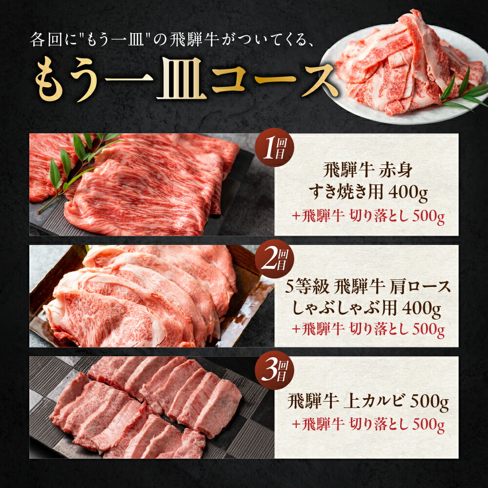 - 【ふるさと納税】 贅沢 飛騨牛 もう一皿 定期便 (3回お届け) | 5等級 A5 a5 ブランド牛 定期便 焼肉 すき焼き しゃぶしゃぶ 切り落とし 赤身 肩ロース カルビ 国産 食べ比べ セット 牛肉 肉 和牛 毎月 焼き肉 すき焼き肉 切り落とし すきやき 冷凍 どやな飛騨市 岐阜県