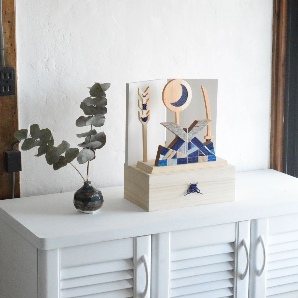 - 【ふるさと納税】水引 日月兜 [藍 Ai]【選べる屏風】 | 兜 水引 伝統 受注生産 節句 飾り ギフト 贈り物 長野県 飯田市