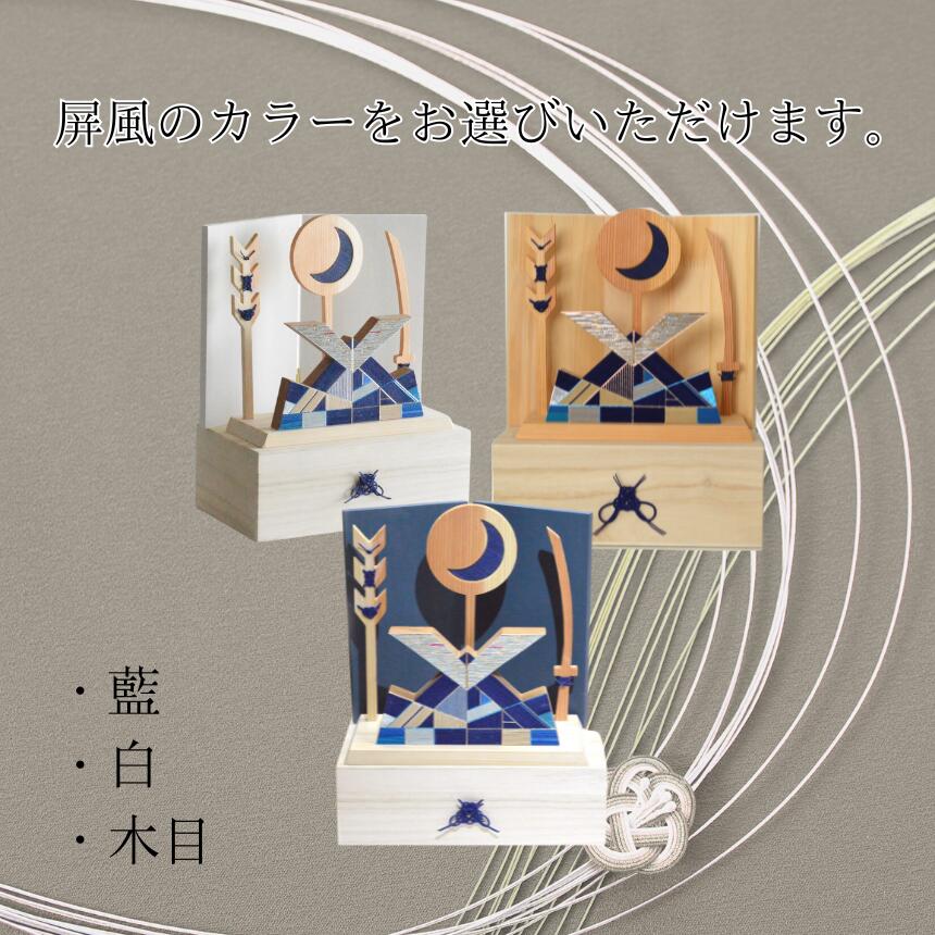 【ふるさと納税】水引 日月兜 [藍 Ai]【選べる屏風】 | 兜 水引 伝統 受注生産 節句 飾り ギフト 贈り物 長野県 飯田市