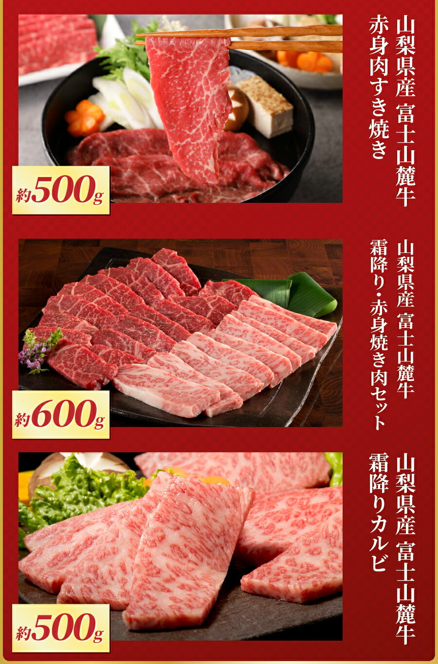 【ふるさと納税】 福袋 牛肉 ロースステーキ 600g 200g×3枚 赤身肉 すき焼き カルビ 約500g 焼き肉 牛霜降り 200g 牛赤身 400g ステーキ 精肉 ビーフ 国産 富士山麓牛 ロース やわらか 霜降り 冷凍 人気 山梨県産 富士吉田 70000 70,000円