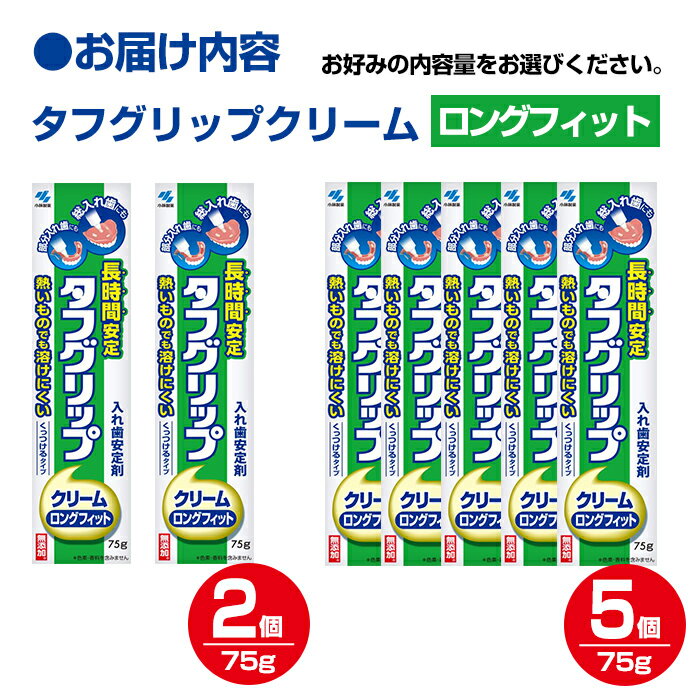 - 【ふるさと納税】長時間安定タフグリップクリーム 75g 選べる容量 2個・5個 小林製薬 入れ歯安定剤 入れ歯 義歯 オーラルケア 歯 衛生用品 日用品 口腔ケア 口内清潔 歯の健康【CGC】ta591・ta592