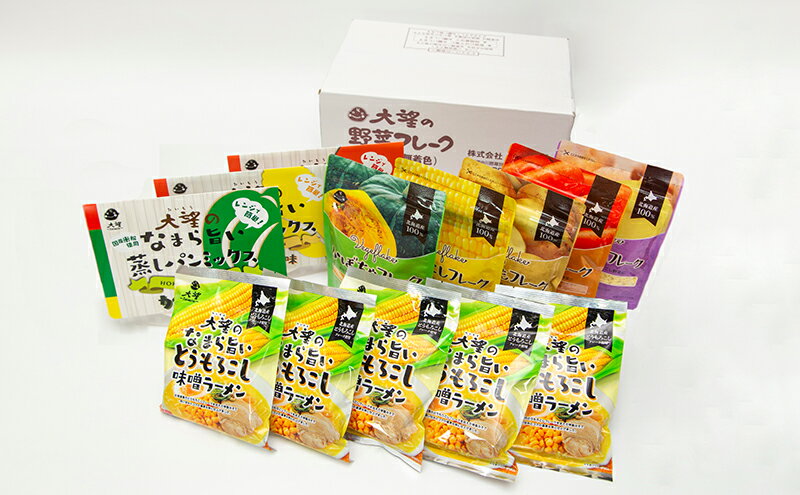 【ふるさと納税】【年末限定】北海道 十勝[野菜フレークの大望]野菜グルメ福箱 時短グルメセット(フレーク5種・ラーメン5食・蒸しパン3種)2026年1月より発送【 フレーク 離乳食 時短 野菜 ペースト 赤ちゃん 料理 】 お届け:2026年1月より発送開始
