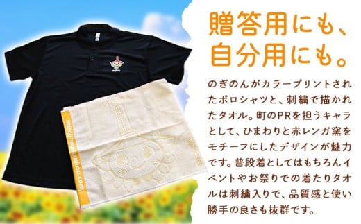 - のぎのん ポロシャツ・タオル セット 1セット ポロシャツ 紺 Lサイズ タオル グレー 野木町観光協会《30日以内に出荷予定(土日祝除く)》栃木県 野木町 のぎのん ひまわりサンちゃん マスコットキャラクター 通気性