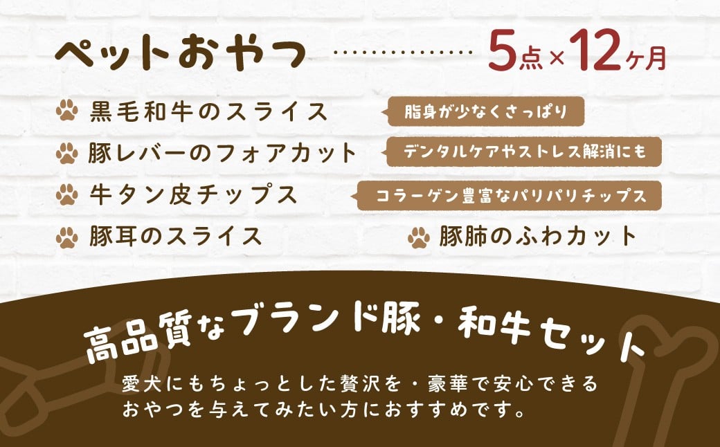- 【毎月届く】&WAN Kitchenペットおやつセット(神戸ポーク+和牛セット)(豚耳スライス/豚レバー/豚肺/牛タン皮チップス/黒毛和牛のスライス) SMU025