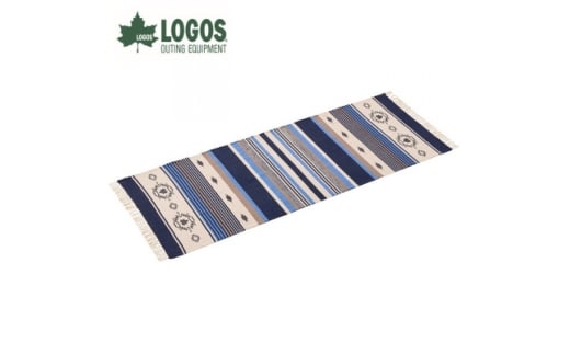 LOGOS コットンラグ (240×90cm)ブルー 雰囲気あるアウトドアシーンに 71809757【1689208】