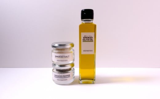 - 【自家製】燻製調味料3点セット(燻製オリーブオイル・燻製ソルト・燻製ペッパー)燻製 スモーク オイル 塩 胡椒 調味料 料理 グルメ ギフト 贈答 贈り物