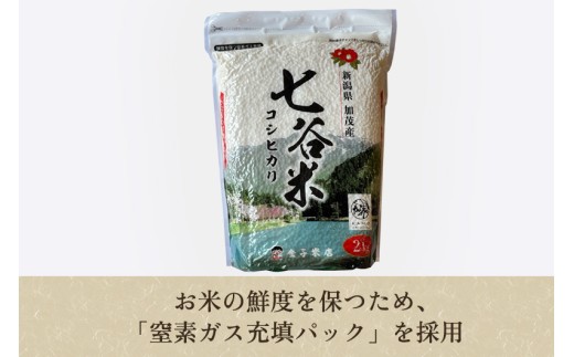 【令和7年産新米】【定期便5ヶ月毎月お届け】老舗米穀店が厳選 新潟産 従来品種コシヒカリ「七谷米」精米2kg 〈順次出荷〉 白米 窒素ガス充填パックで鮮度長持ち 金子米店 定期便