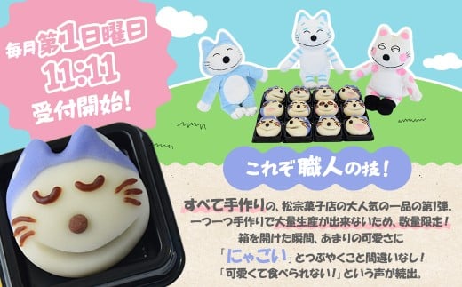 - かわいい!和菓子「11ぴきのねこたち」【毎月11セット限定】スイーツ 和菓子 猫 ねこ お菓子 キャラクター 青森県三戸町 AJ-20-002