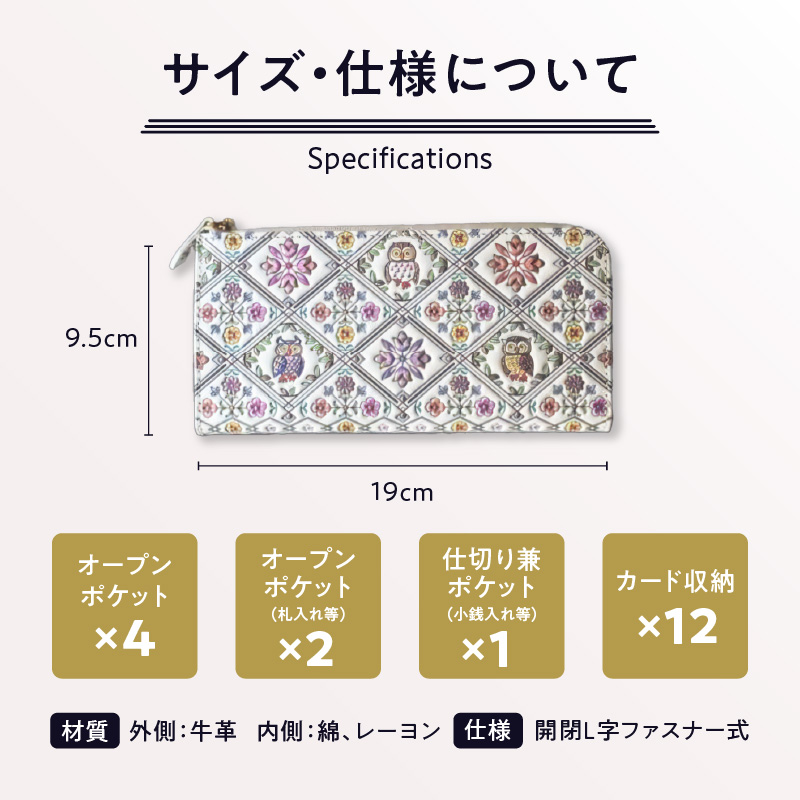- 【浅草文庫】L字長財布 ふくろう柄(カラー:ピンクゴールド)