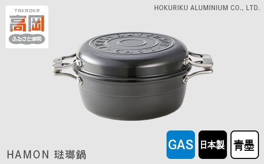 - 【ガス火用】HAMON 琺瑯鍋【青墨】 21cm 北陸アルミニウム ガス火用 日本製 富山県 高岡市 FAD-0327