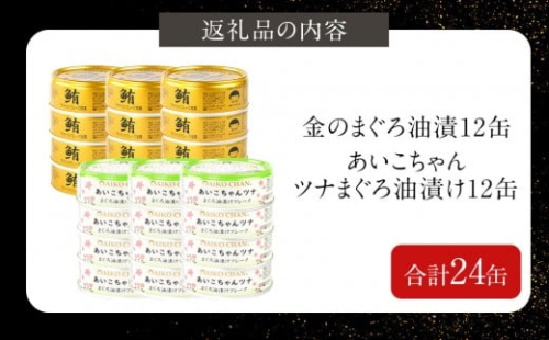 あいこちゃん金のまぐろ油漬12缶&あいこちゃんツナ油漬12缶 合計24缶 缶詰 備蓄 無添加 防災 静岡 保存食 非常食 常温