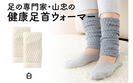 - 健康足首ウォーマー(フリー)【白】 シルクとウールの二重構造 温かい 冷え性 足湯のような暖かさ フリーサイズ 加茂市 山忠