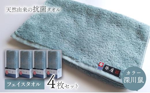 今治タオルブランド認定品 タオル 天然由来の抗菌タオル 「柿渋染め 古来の彩(いろ)」 フェイスタオル 4枚セット(カラー 深川鼠)