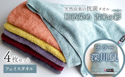 - 今治タオルブランド認定品 タオル 天然由来の抗菌タオル 「柿渋染め 古来の彩(いろ)」 フェイスタオル 4枚セット(カラー 深川鼠)