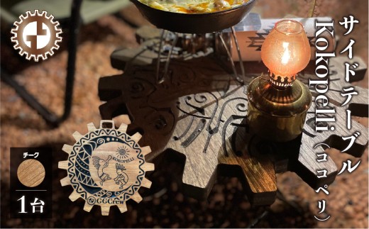 【チーク】サイドテーブル Kokopelli ココペリ(1台)(幅 430mm×奥行 430mm×高さ 380mm)机 テーブル 彫刻 キャンプ 軽量 天然木 折り畳み【GGCrew】