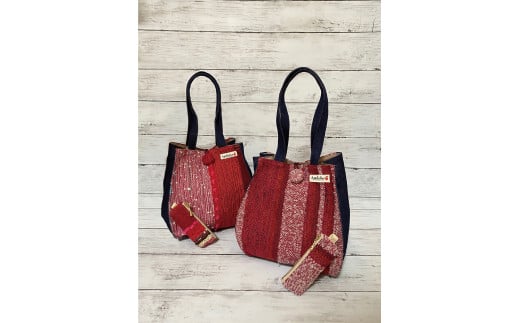 - B209 さをり織り柿バッグ・印鑑ケースセット【柿バッグ・印鑑ケースセット(赤系)】