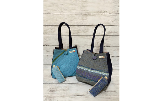 B209 さをり織り柿バッグ・印鑑ケースセット【柿バッグ・印鑑ケースセット(赤系)】