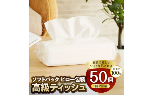 - ソフトパック 高級ティッシュ ピロー包装 50個 (1パック 200組 400枚) 箱なし 詰め替え ソフトパック ティッシュペーパー パルプ100% ソフト テッシュ テイッシュ 防災 備蓄 消耗品 日用品 生活用品 富士市 [sf002-193]