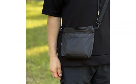 【黒】雨の日にも!ポケット付き軽量ナイロンショルダーバッグ サコッシュ 撥水ポシェット