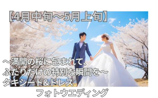 【2026年4月中旬~5月上旬 桜の開花時期限定】桜フォトウェディングプラン(ウエディングドレス・タキシード/撮影データ30カット付き)/株式会社ベルアンジュ フォトウェディング 写真 桜 高島城 体験 旅行 信州 長野県 諏訪市 諏訪 【100-08】