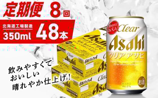 - 【定期便 8ヶ月】クリアアサヒ<350ml>24缶 2ケース 北海道工場製造 缶ビール ビール クリアアサヒ すっきり うまみ 晴れやか 北海道ビール工場製造 ビール定期便 アサヒビール 北海道 札幌市